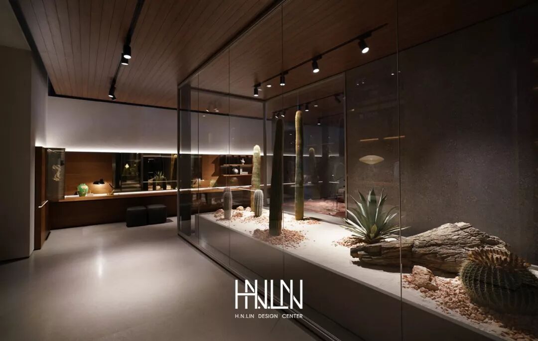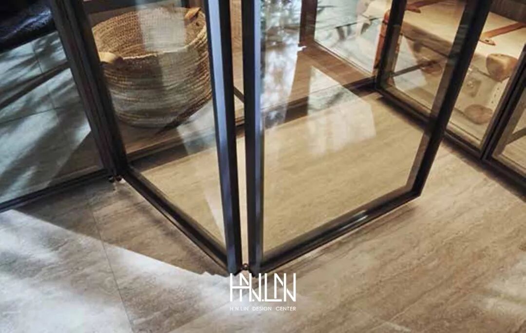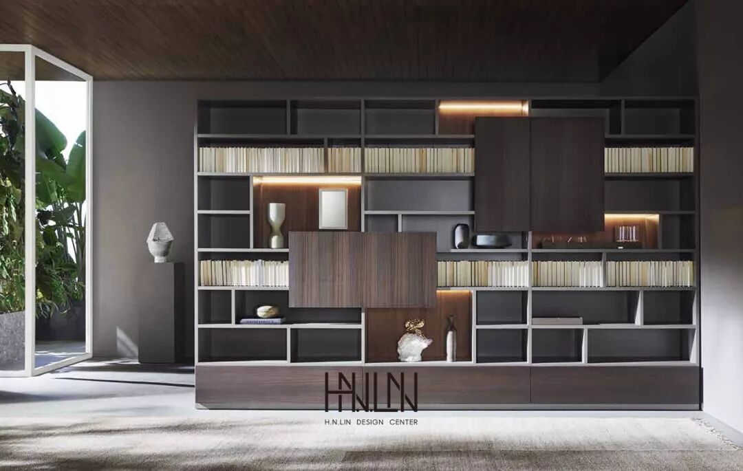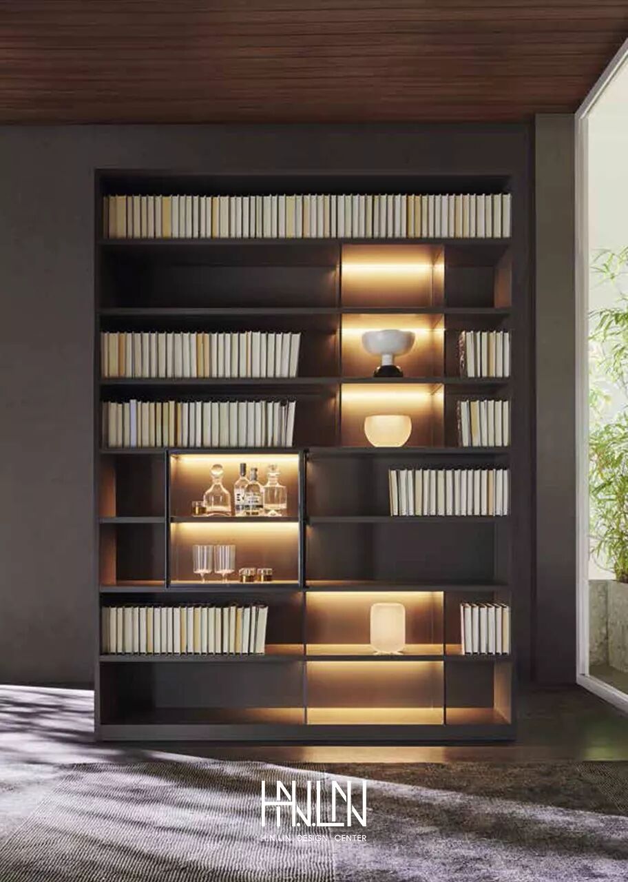 ▲ 纤细的玻璃隔断分隔书籍和装饰品,使其易于观看和欣赏。